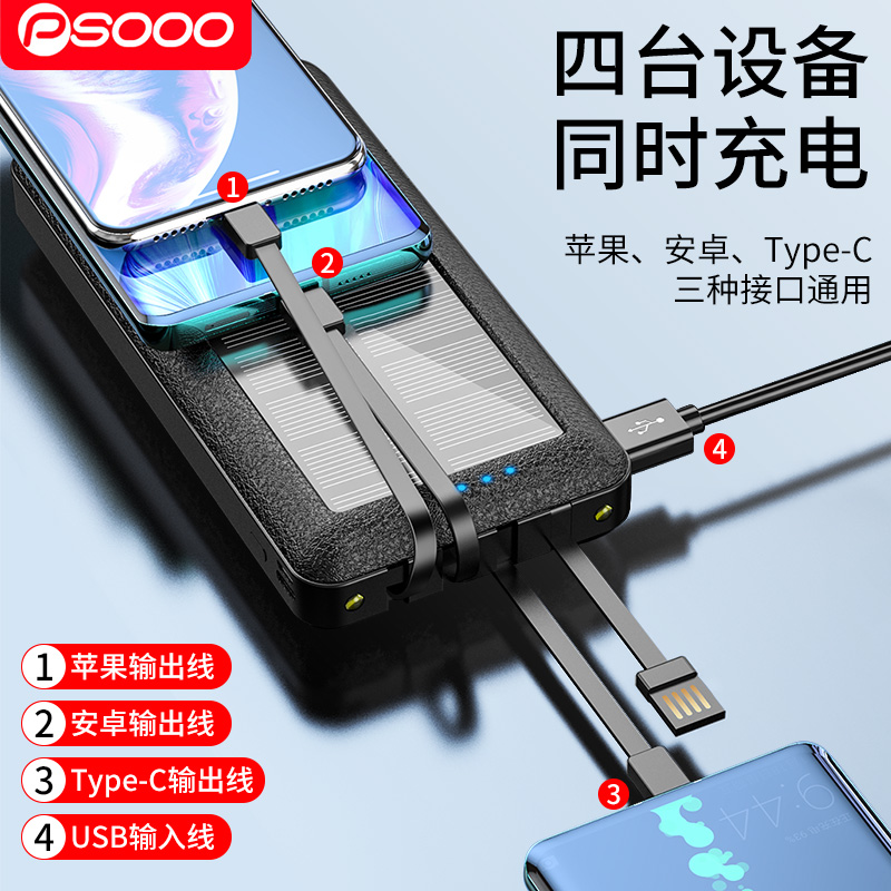 30000mA with 4-wire solar charging treasure large capacity convenient fast charge support mobile power supply for Huawei ViVOPPO Apple Xiaomi General-purpose 220V super large amount