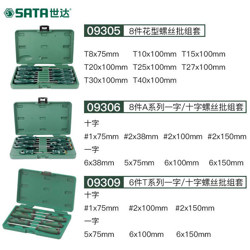 09305 8 pieces A series of flower shaped screw screwdrivers sets 09306 8 pieces A series of cross screw screwdrivers 09309 6 pieces of T series with cross screw screwdrivers