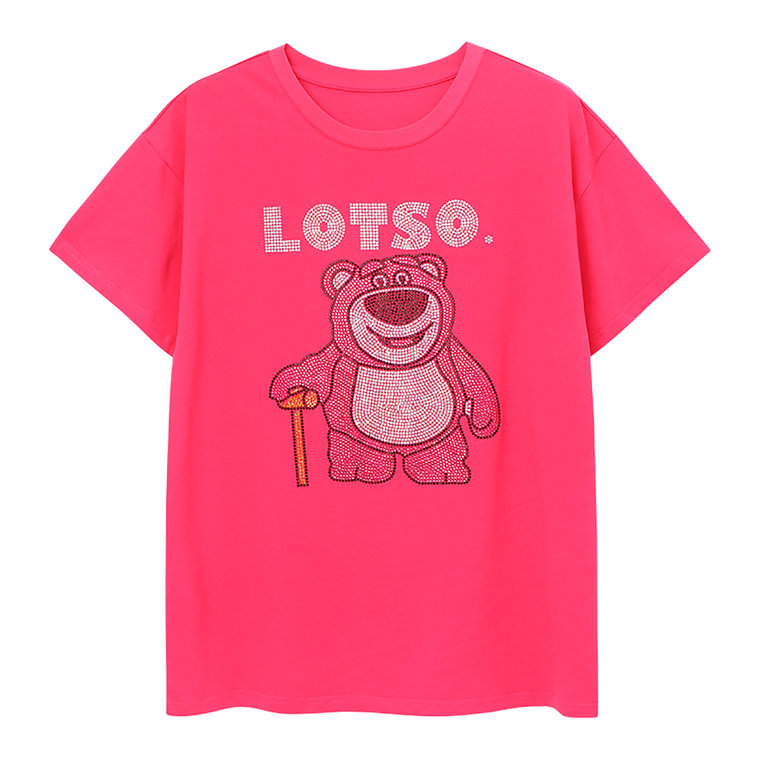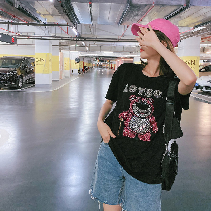 Chen Tai Pig L Mother Girl Clothing 2022 Summer New Hot Drill Loose Cartoon Cute Strawberry Bear Pro-Costume T-shirt
