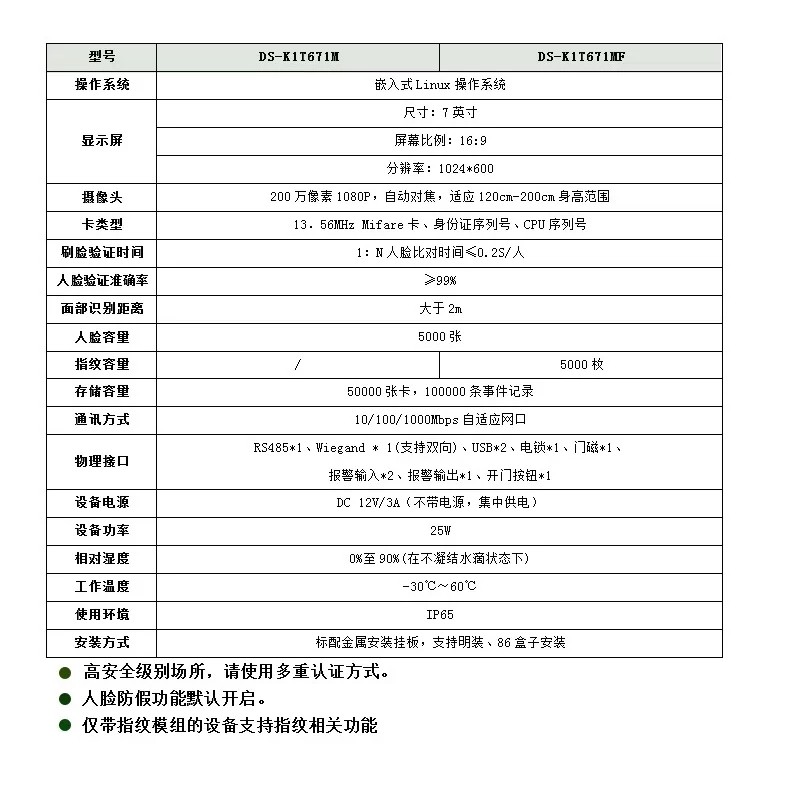 Face card DS-K1T671M Face card WiFi 671MW Face fingerprint card DS-K1T671MFDS-K1T671M