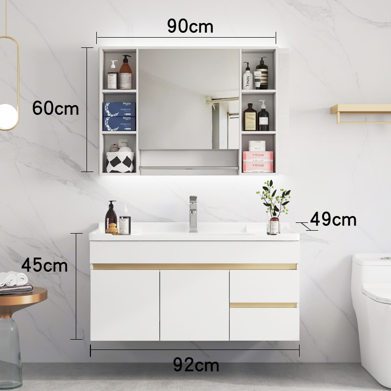 Bathroom Cabinet Modern Minimalist Style Bathroom Dresser Smart Mirror Wash Basin Multilayer Solid Wood Nordic Style Bathroom Cabinet