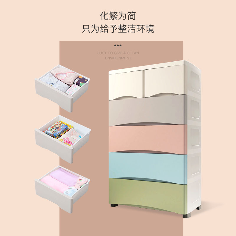 Multi-layer plastic drawer storage cabinet Space-saving children's wardrobe finishing box Household thickened baby storage cabinet