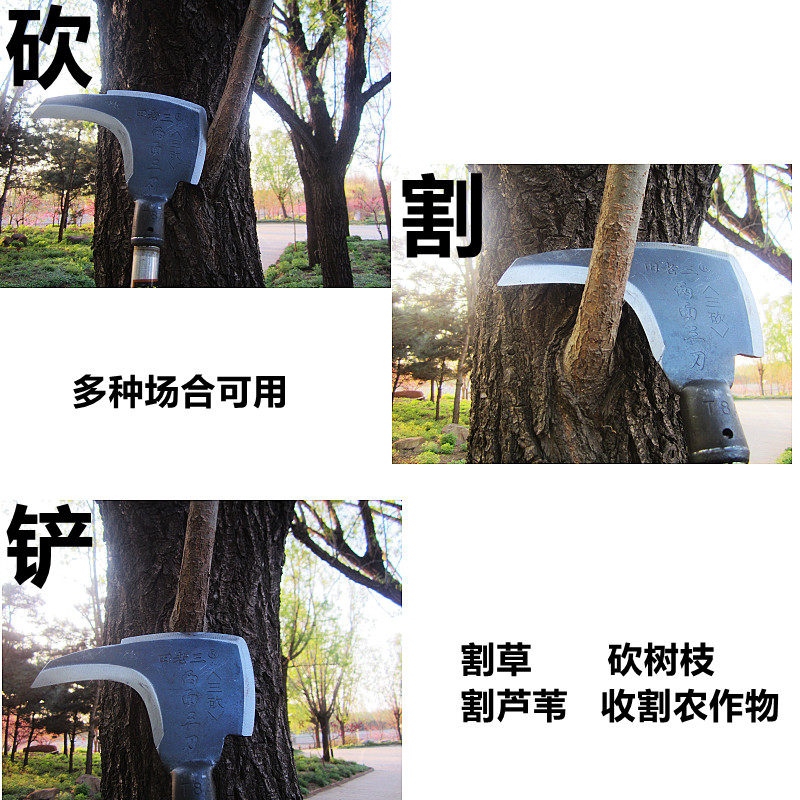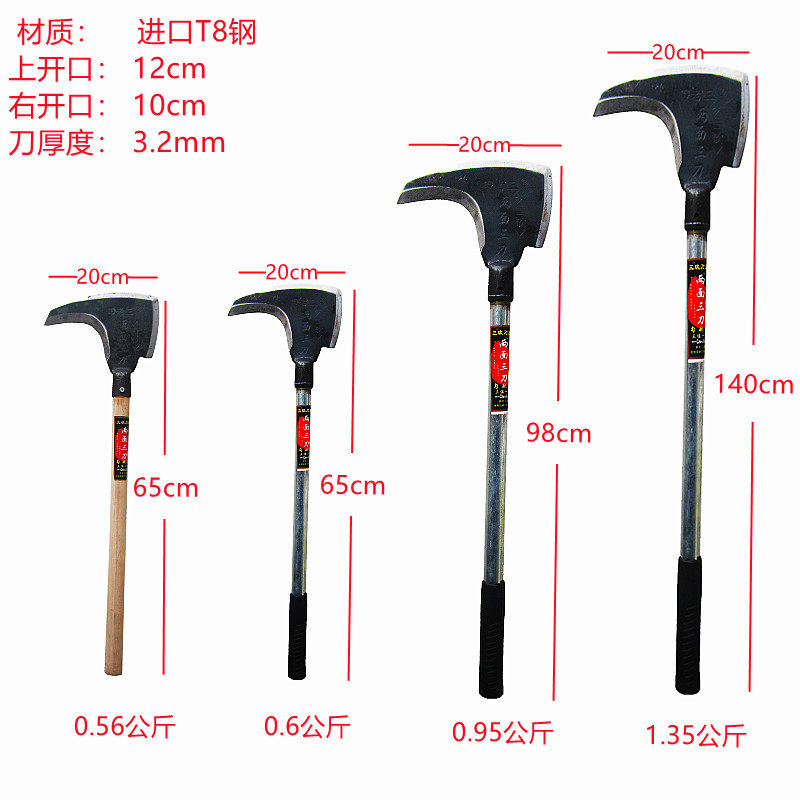 Lengthened triple-edged cut grass chopping wood cutting and cutting of branches sickle multipurpose home sharp open edge iron wood handle agricultural sickle