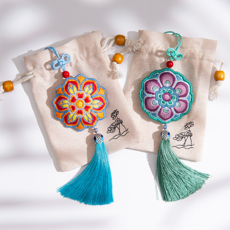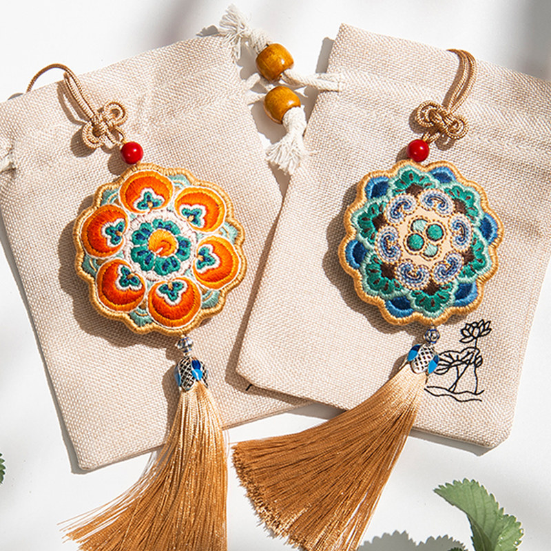 diy handmade material bag self-embroidery embroidery caisson embroidery sachet car pendant purse safe amulet bodyguard couple Dunhuang