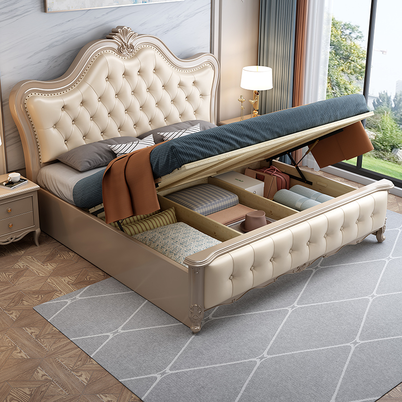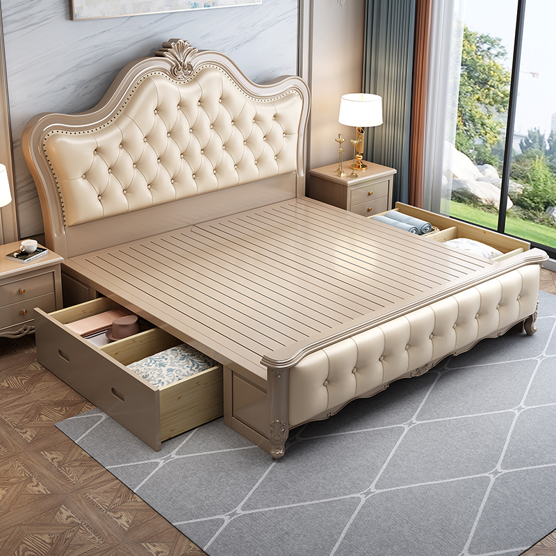 European-style solid wood bed modern minimalist double bed master bedroom 18 meters large bed simple European bed luxury wedding bed 15 meters home