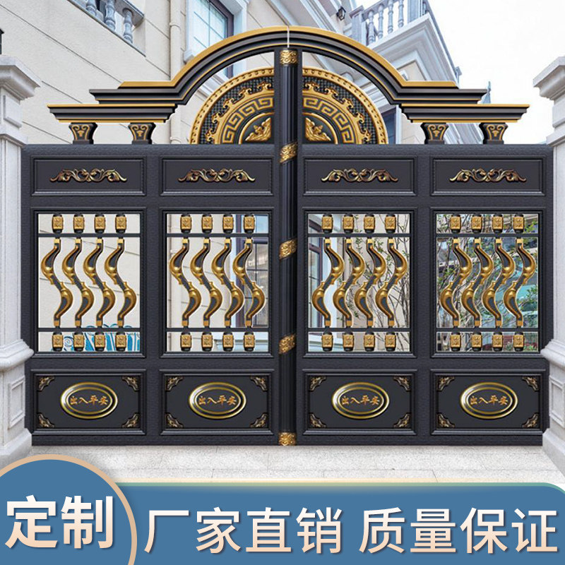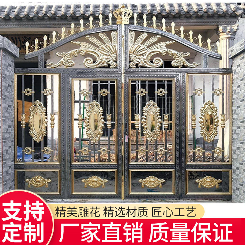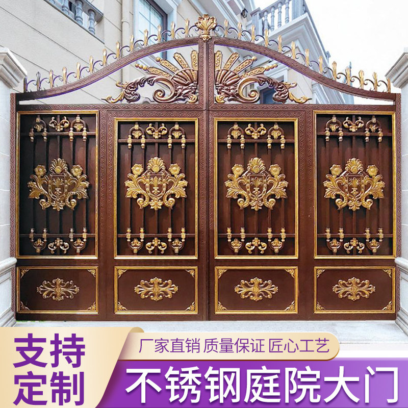 Rural self-built house entrance door luxury stainless steel paint craft Villa double door courtyard translation open door