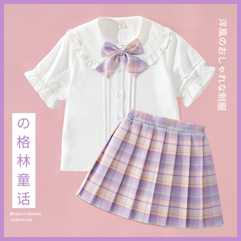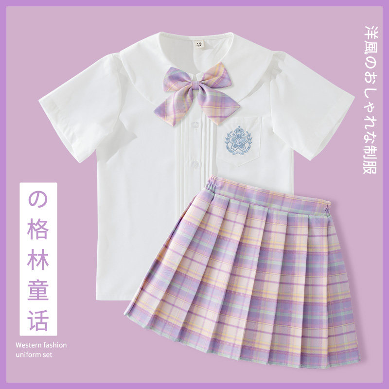 Girls jk uniform summer suit full set of baby summer skirt genuine 12-year-old children primary school students summer dress children