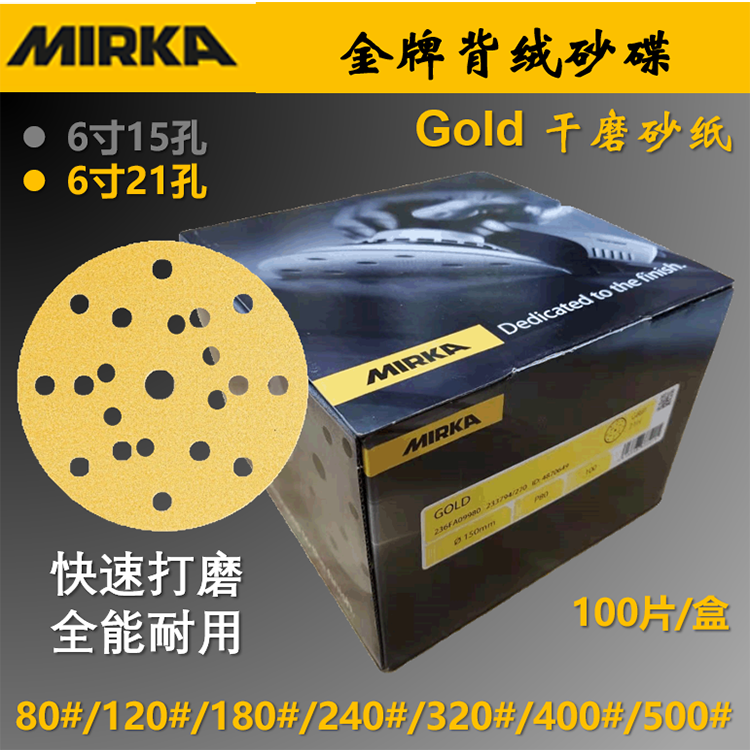 Finnish grindka MIRKA GOLD BACK FROSTED DISC GOLD polished 6-inch 15 holes 6-inch 21 holes round dry frosted paper