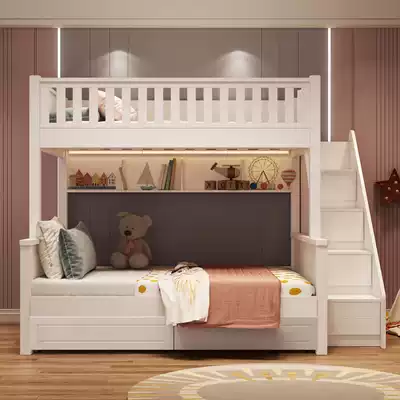 Solid wood high and low bed Children's double-layer two-layer parallel combination bed small apartment adult simple upper and lower bunk parallel to the mother