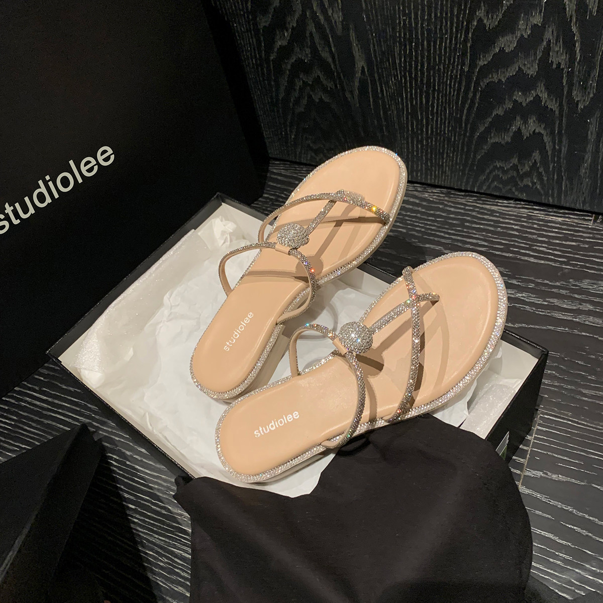 2022 summer new fairy style sandals women's flat bottom with thong Roman rhinestone beach sandals and slippers shoes for outer wear