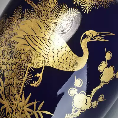 Gouge collection grade blue glaze 24k gold painted pine crane Yannan sulforaphne bottle ornaments handmade Jingdezhen porcelain