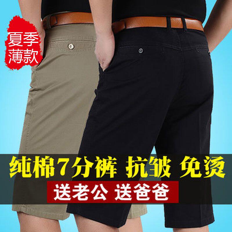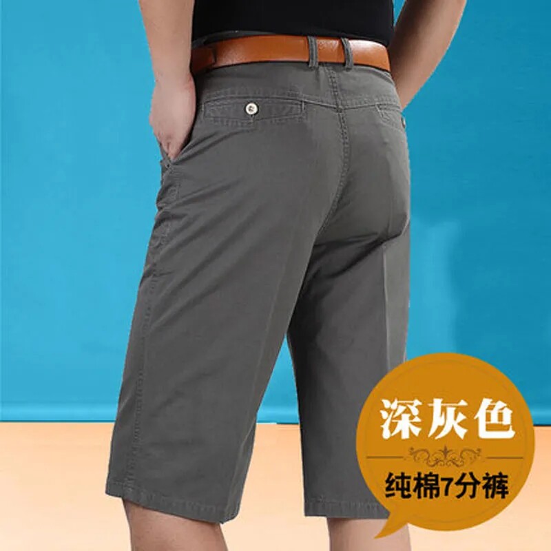 Middle-aged men's cropped pants loose casual shorts summer thin middle-aged suit pants men's high waist deep five pants