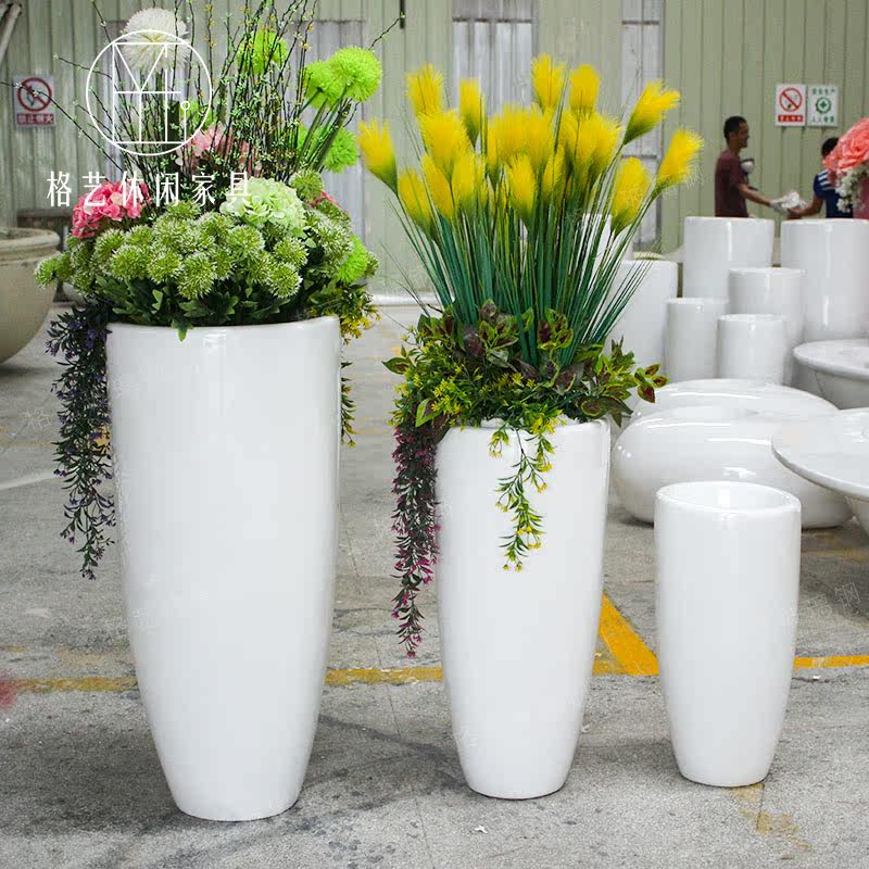 Glass Fiber Creative Round High Flower Pot Outdoor Mall Public Casual Beauty Chen Vase Eu Style Brief Portfolio Florator