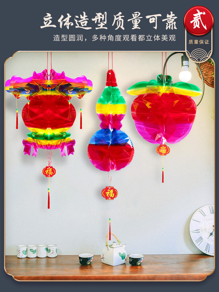 Dragon Boat Festival Paper Gourd Crystal Plastic Paper Colorful Lucky Lantern May Festival Northeast Colorful Honeycomb Apple Gourd