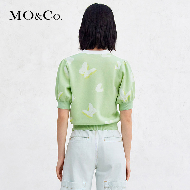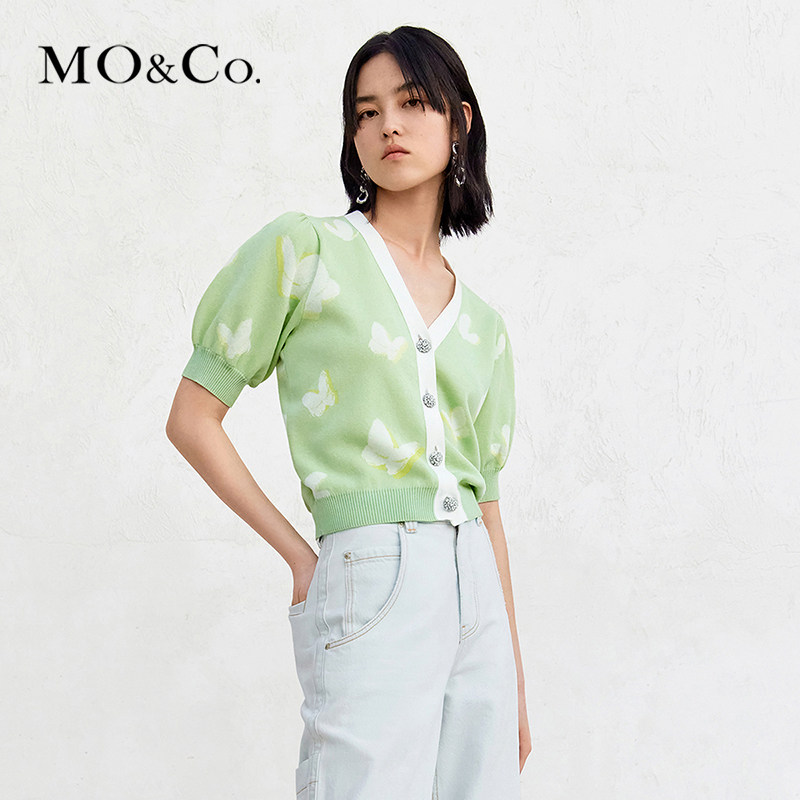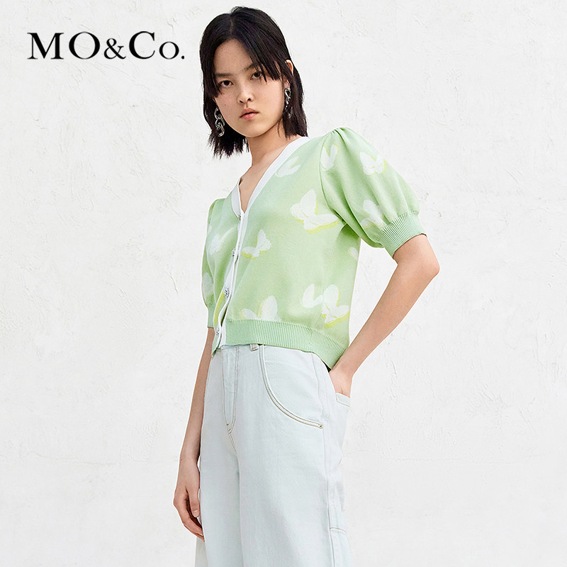 Yang Mi with the same-MOCO 2021 summer new bubble sleeve butterfly pattern knitted cardigan top Mo Anke