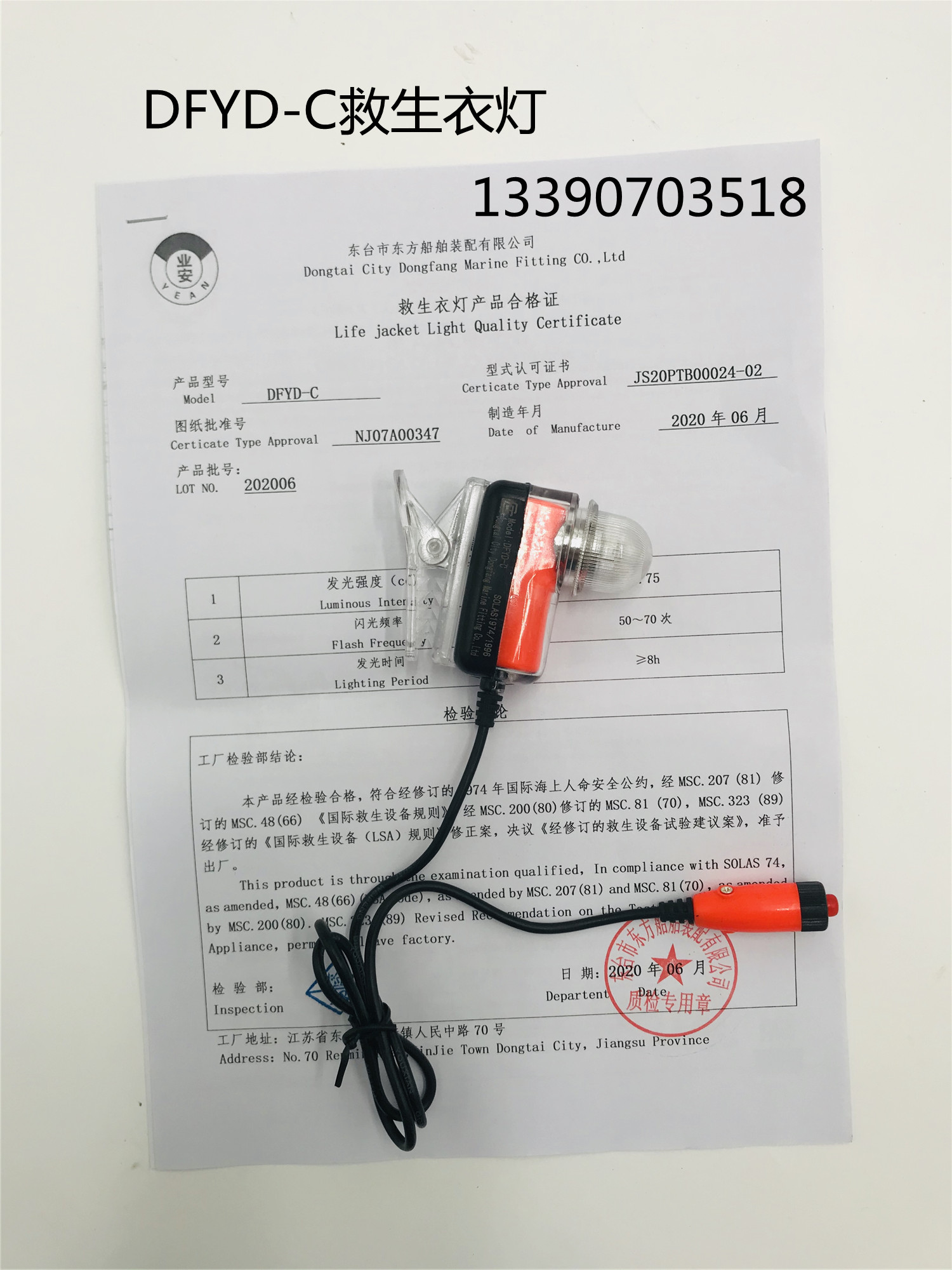 Dongfang DFYd-C Life Vest Lamp Marine Lithium Battery Insulation lamp Long tail New Ship Inspection CCS Certificate