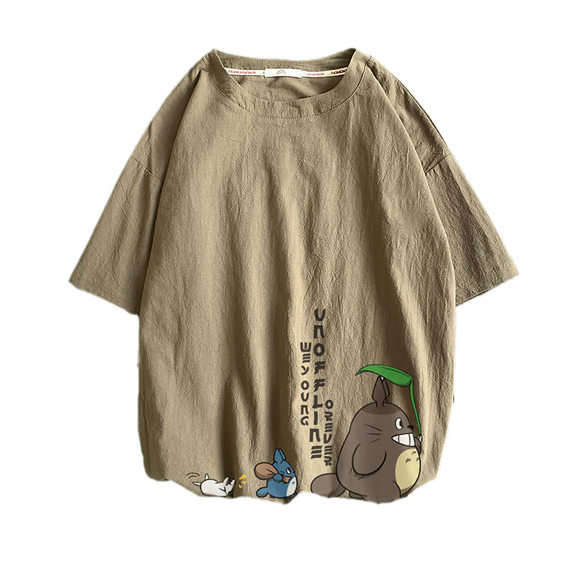 Dragon cat printed linen short sleeve T-shirt male summer ins Chauer Tide Cards Middle School Students Easy Day Ensemble Retro Teenagers Clothes
