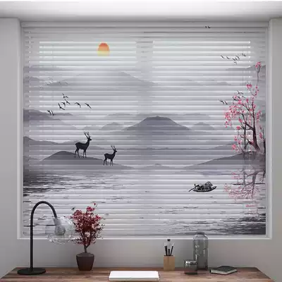 Imeifen non-perforated printed Venetian curtain Chinese style office home balcony dressing room hand-pulled shade curtains