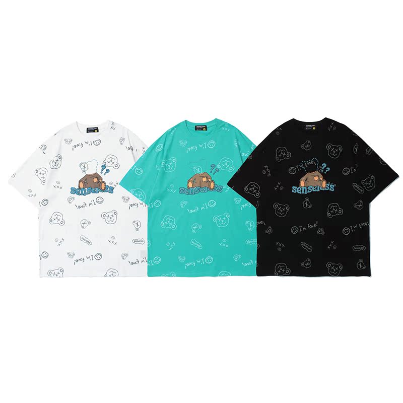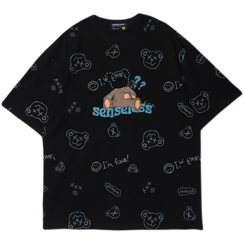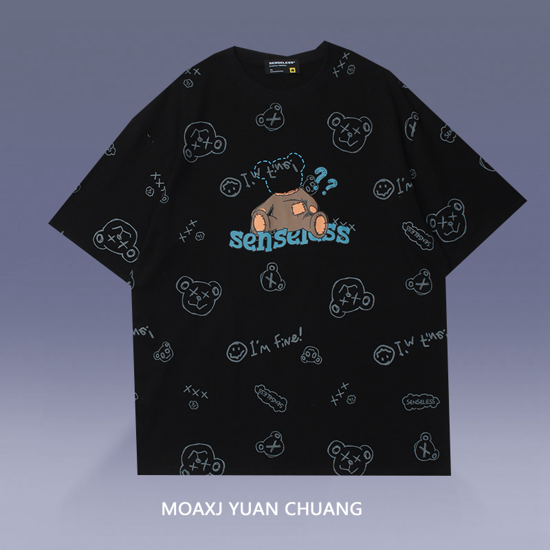 MOAXJ original tide brand European and American tide brand round neck short-sleeved T-shirt male personality creative bear print wild student