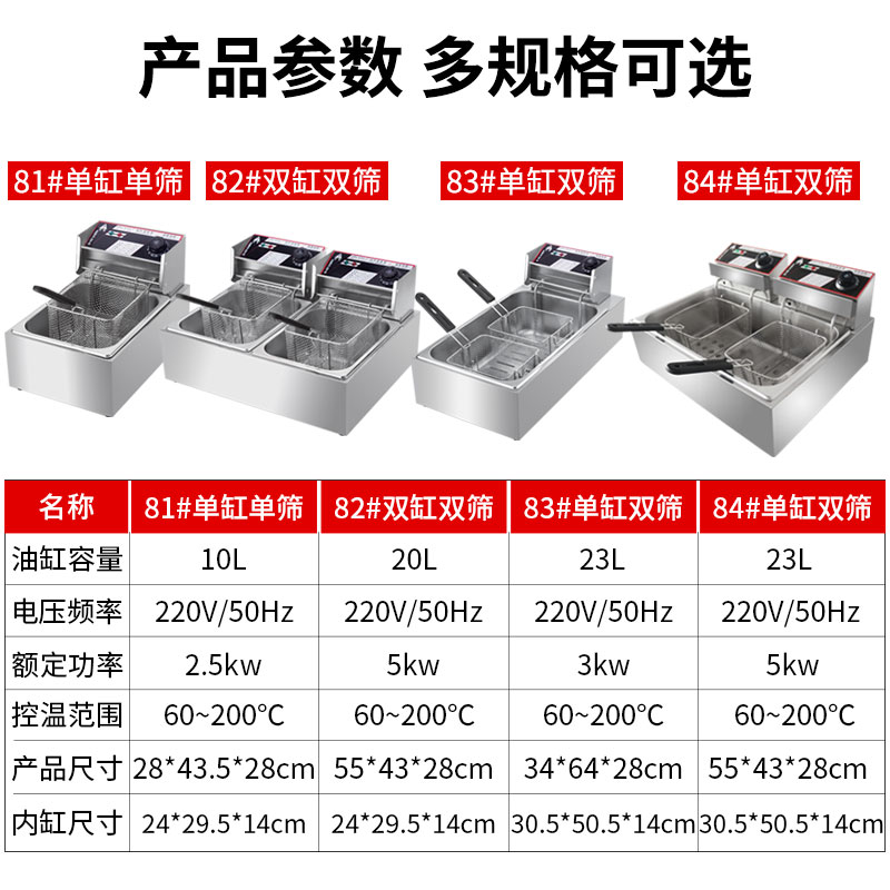 81#豪华款10升单缸炸炉2500瓦(without a frying basket and a lid) 81#豪华款10升单缸单筛炸炉2500瓦(with a frying basket and a lid) 82 #