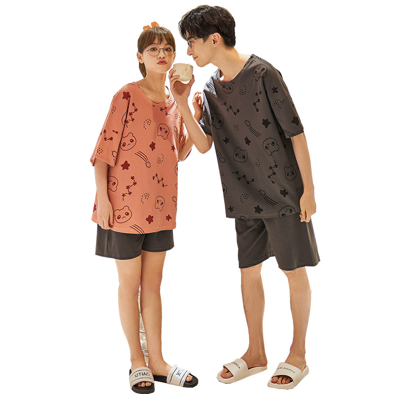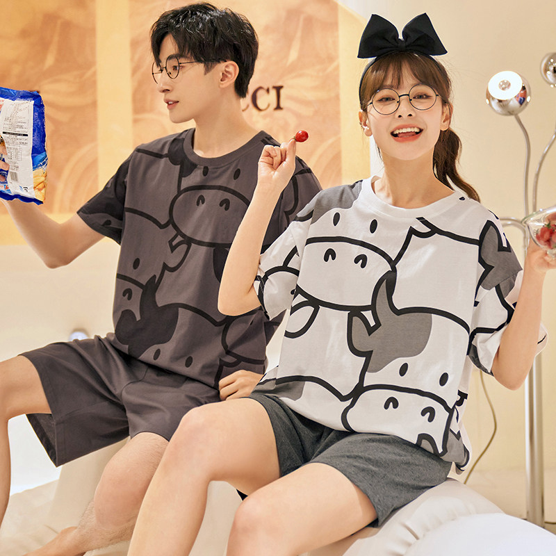 Couples Pyjamas Summer 2023 New Pure Cotton Men And Women Slim ins short sleeves Summer cute Home Suits Suit-Taobao
