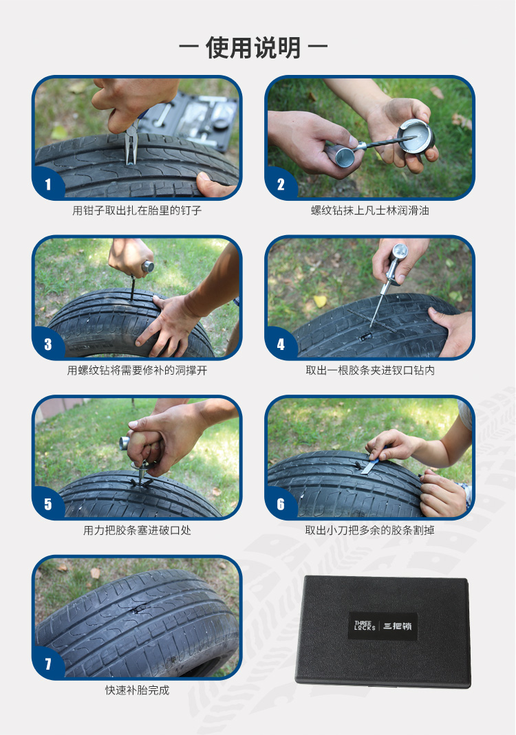 Three locks quick tire repair kit