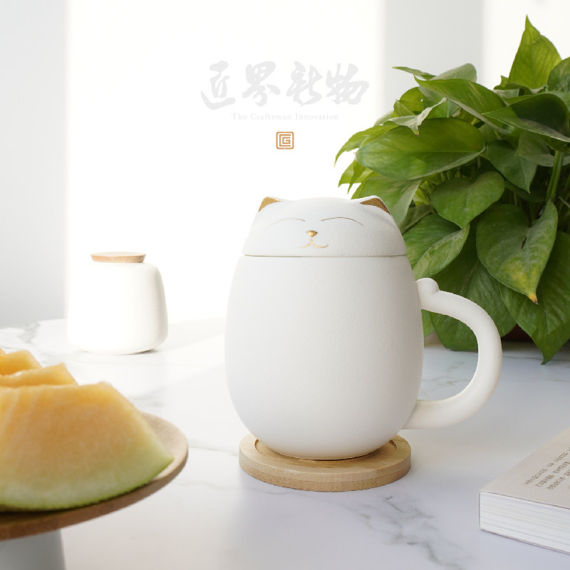 Ceramic Mark Cup with cover office tea separation cup couples with filter bubble tea cup girls