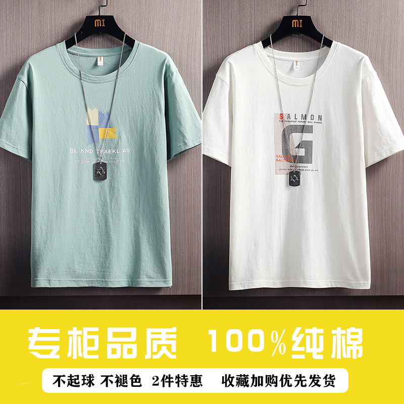 Men's Short Sleeve T-Shirt Versatile Loose Trend Cotton 2021 New Summer Letter Couple T-Shirt Men's