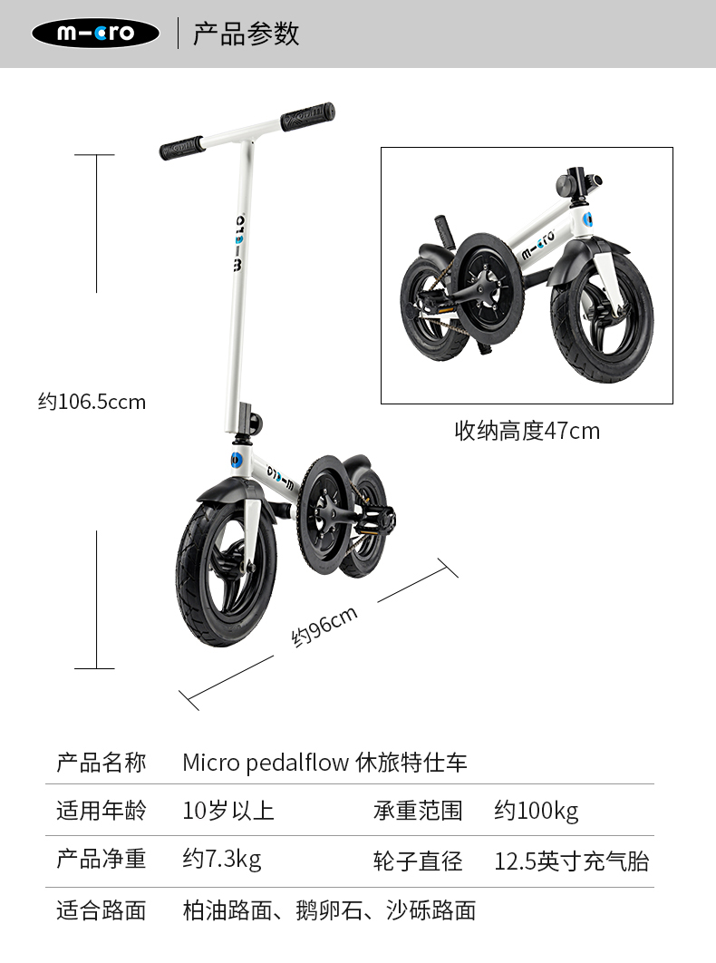 Swiss micro pedalflow Maigumi High Hugh Brigade Folding Fitness Two Wheels Pedaling Adult Cars