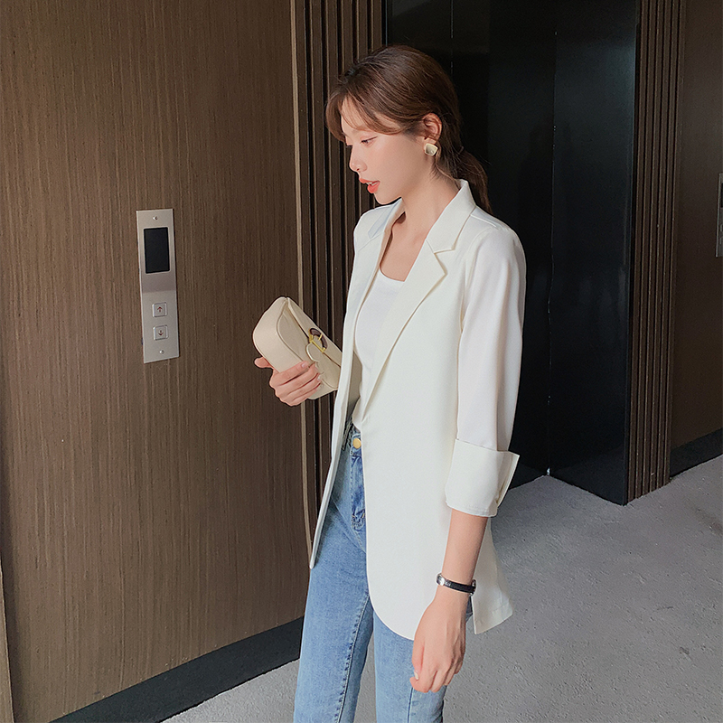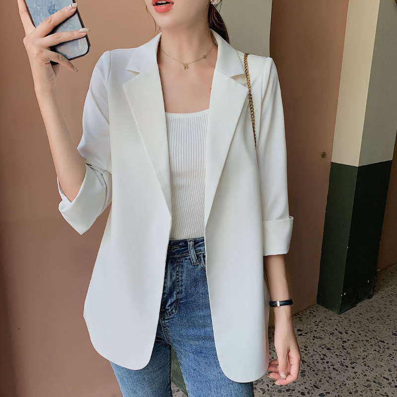 Snowspun small suit jacket woman thin section 2021 spring summer new advanced sunscreen cardiovert red white western suit blouse
