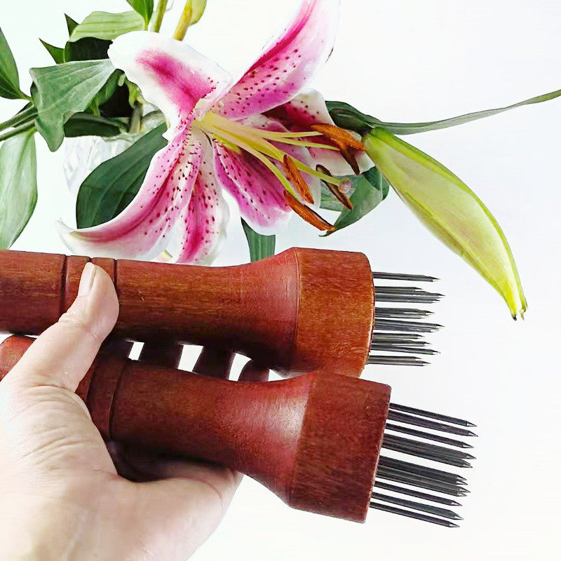 Stainless Steel Red Wood Pig Leather Fork Pine Meat Needle Pig Leather Inserts Pine Meat Instrumental Pork Hammer Button Meat Needle Burning Meat Inserts Bull Gluten