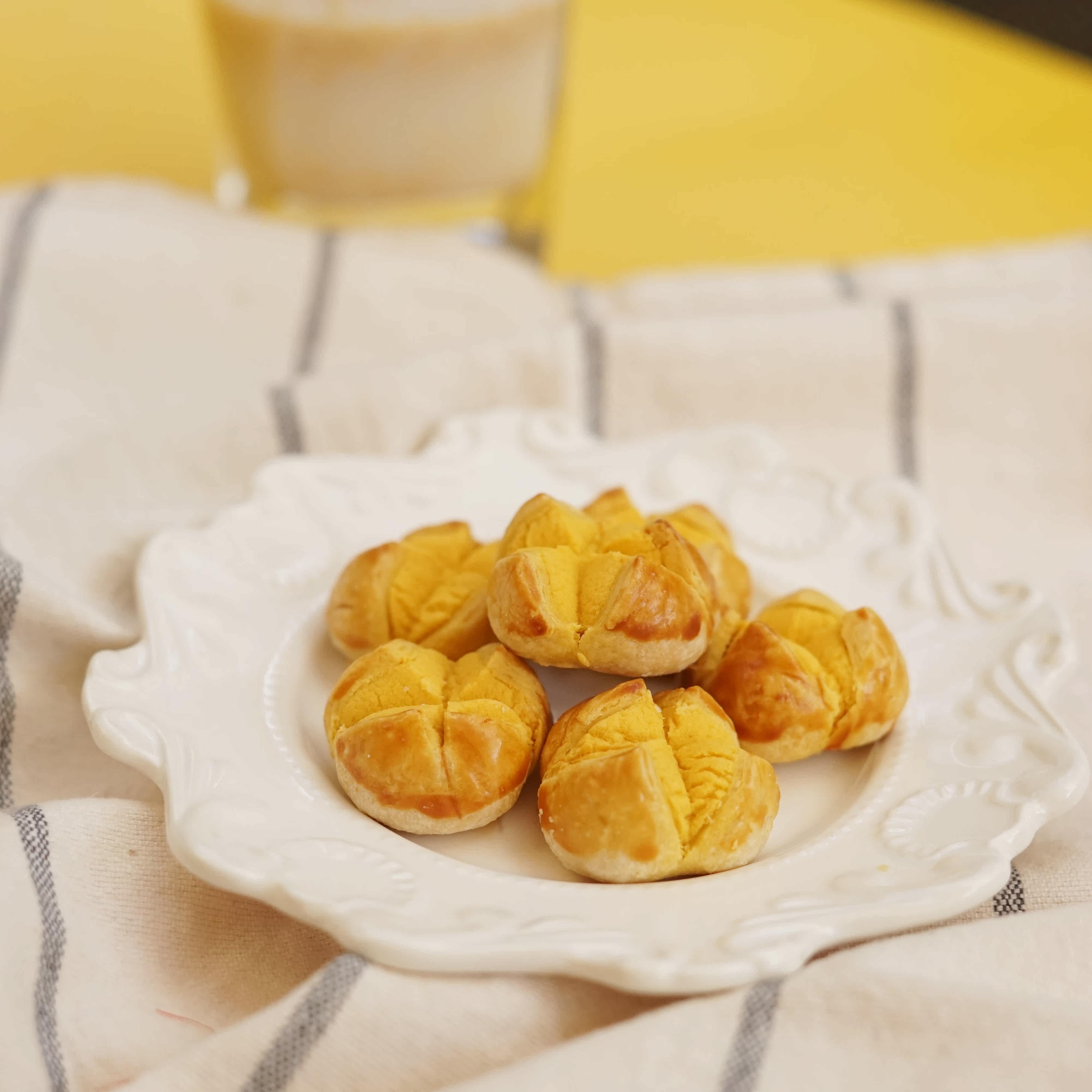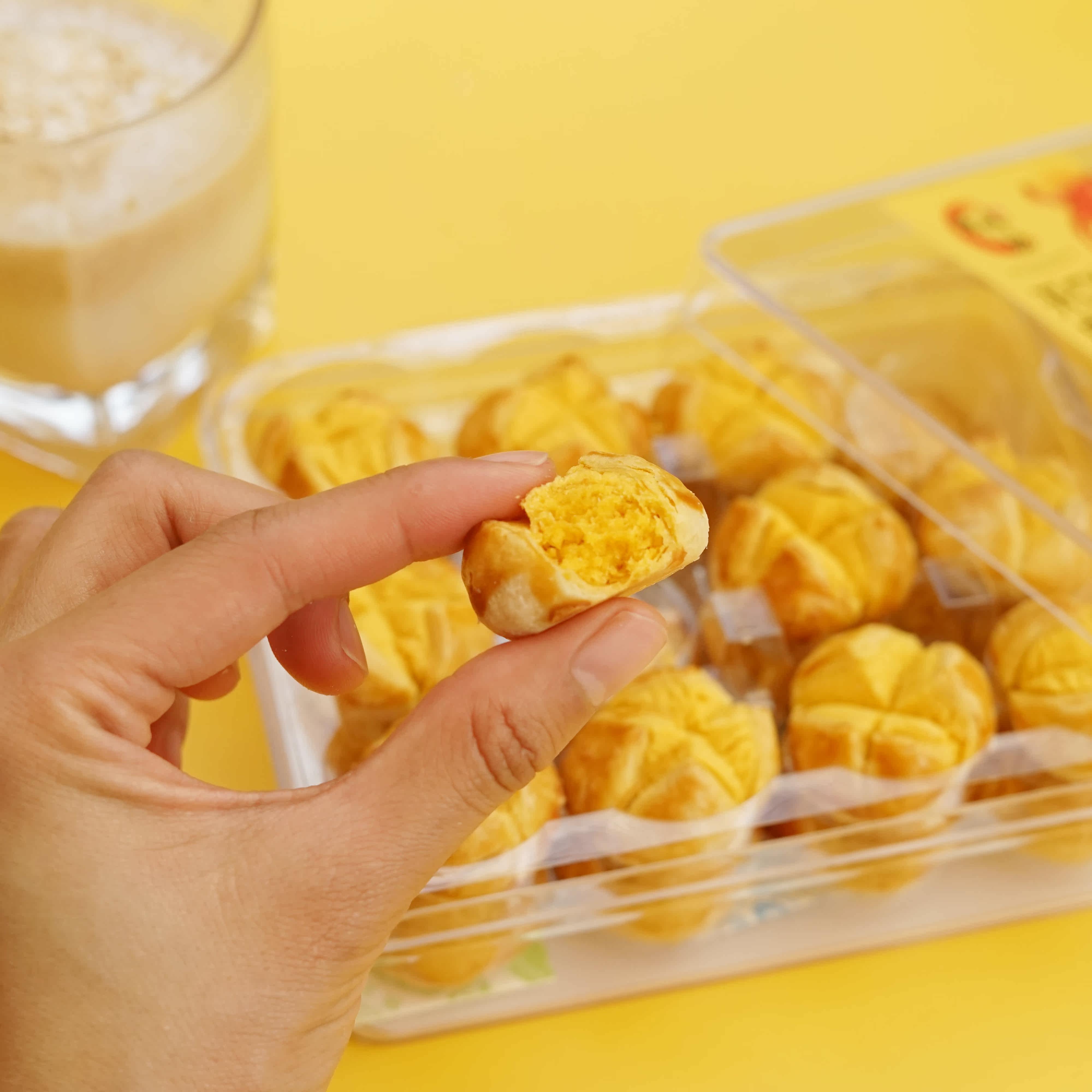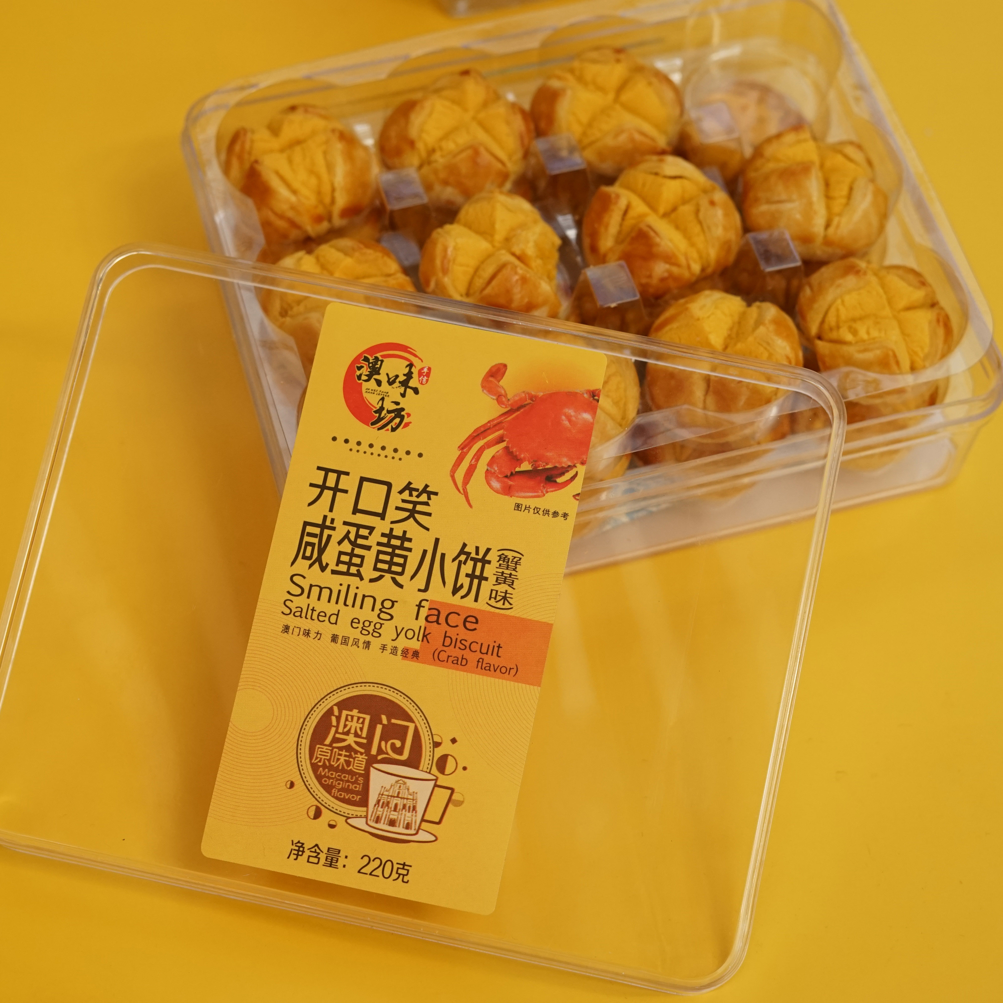 Opening laugh salted egg yolks crisp original taste Hand letter Macau Guangdong Tefic rice producing pastry year delivery Courtesy Home of the Outbreak Snack
