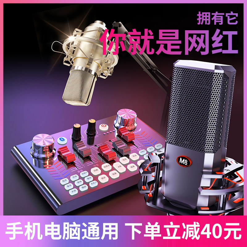 Mobile phone Computer main broadcasting live equipment Full sound card singing private network Red shaking sound General desktop Soundtrack Sound recording radio Mcprofessional Level K Goethe Divine Instrumental Capacitive Microphone Suit All