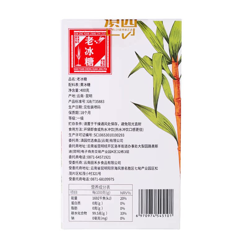 Yunnan Garden Old Ice Sugar 400g Yunnan Tenn. Yellow Ice Sugar Artisanal Sugarcane Ice Sugar Authentic small grain polycrystalline icing sugar