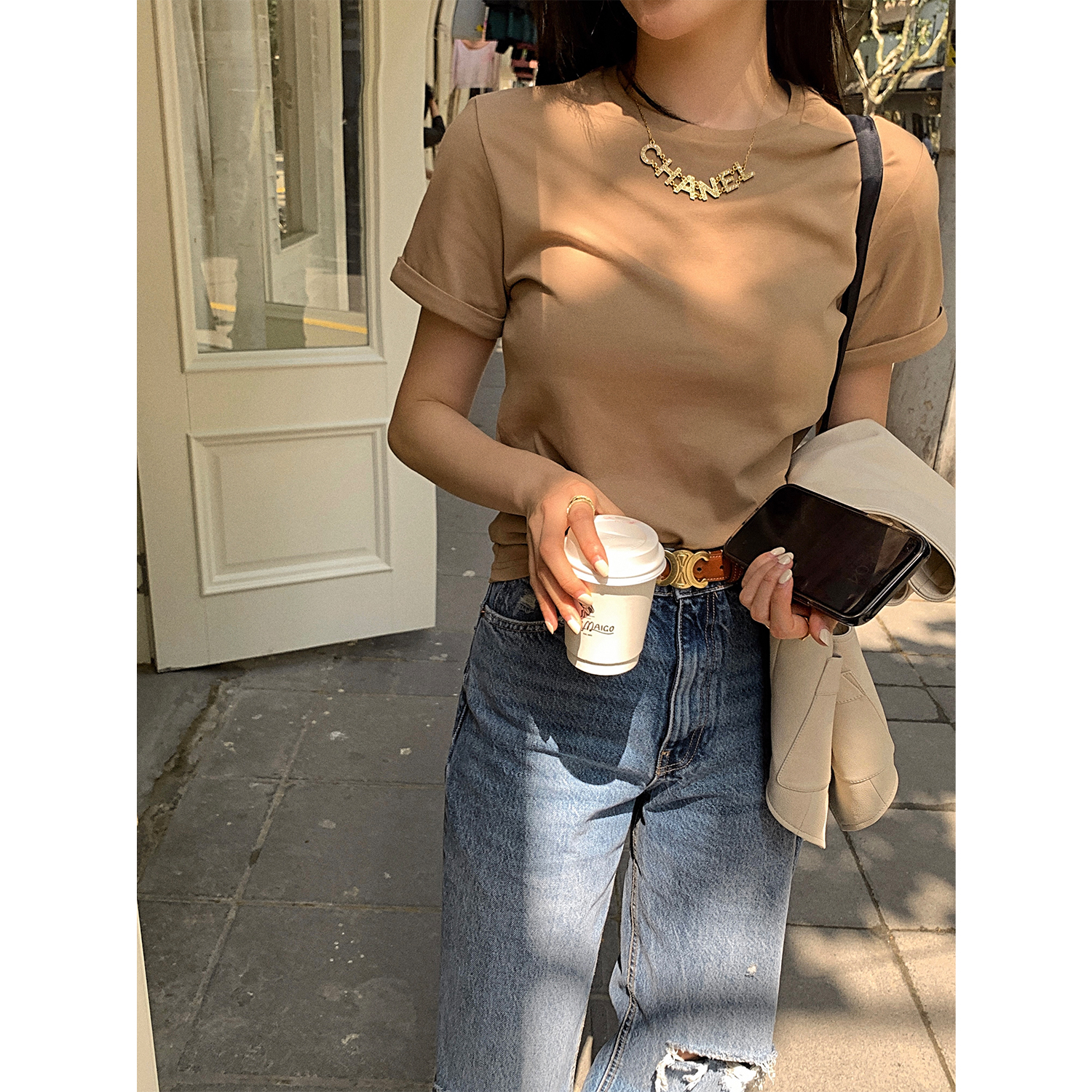 Fu Zhien Summer is summer 5 colors 100% Xinjiang cotton classic round neck basic all-match T-shirt 2021 summer new