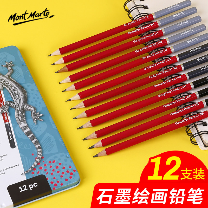 Montmartre graphite lead core carbon pen Sketch drawing charcoal soft medium hard pencil Drawing design cartoon 12-pack iron box