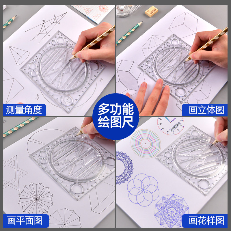 Versatile drawing ruler Ruler Geometric Figure Ruler geometric Ruler Drawing Circle Oval Stencil Ruler Measurements Design Examination And Study Protractor Student Hand Transcript Examination Tool Stationery Triangle Ruler