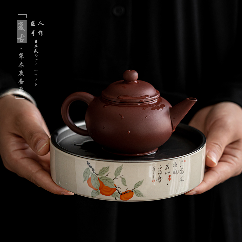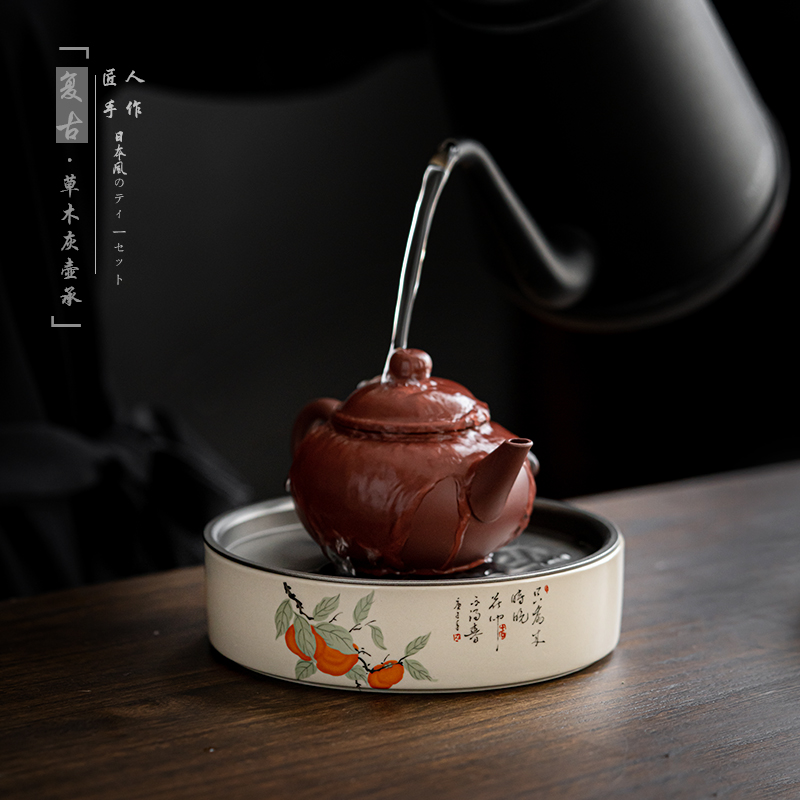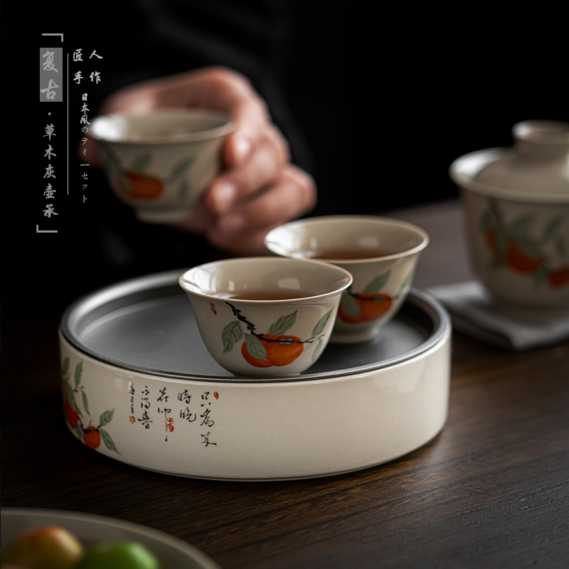 Persimmon plant ash-tin cover pot bearing chrysanthemum plant ash-tin cover pot bearing pomegranate plant ash-tin cover pot bearing bergamot plant ash-tin cover pot bearing red leaves plant ash-tin cover pot bearing bamboo house plant ash-tin cover pot bearing