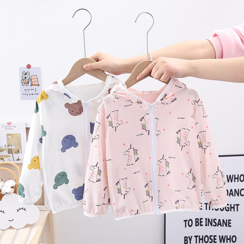 Pure Cotton Children Sunscreen Air Conditioning Hooded Jacket Summer Skin Clothing Thin breathable baby sunscreen for male and female children