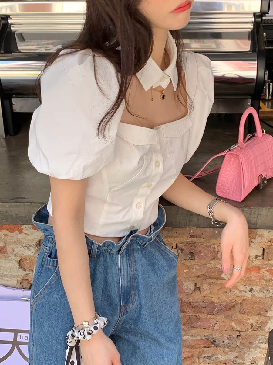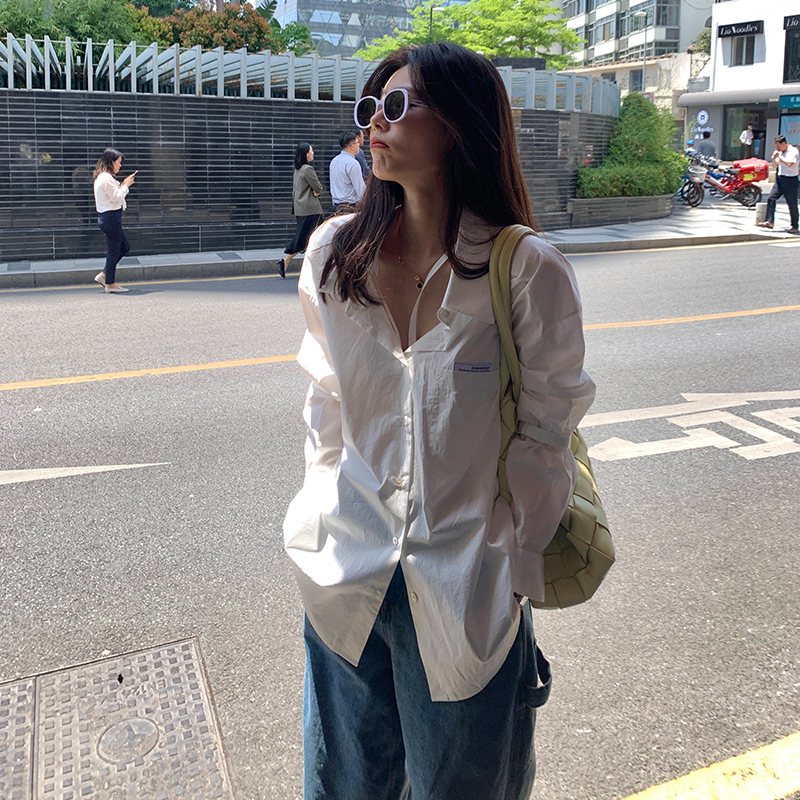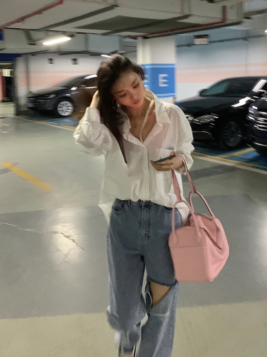CloudSweet white shirt yyds~deconstructed design niche shirt fashionable loose all-match top