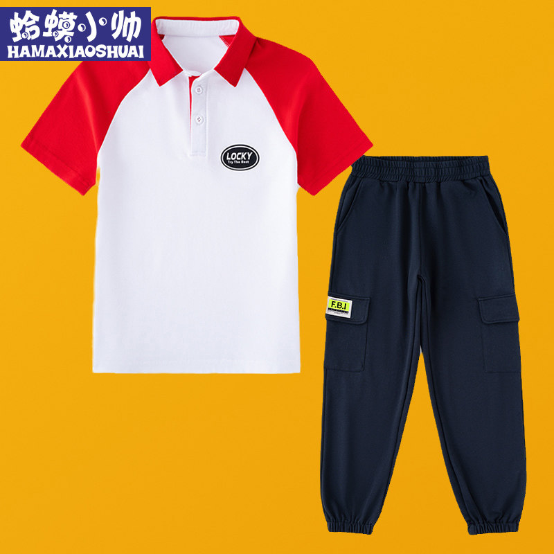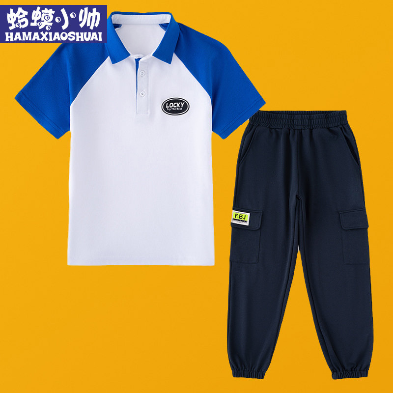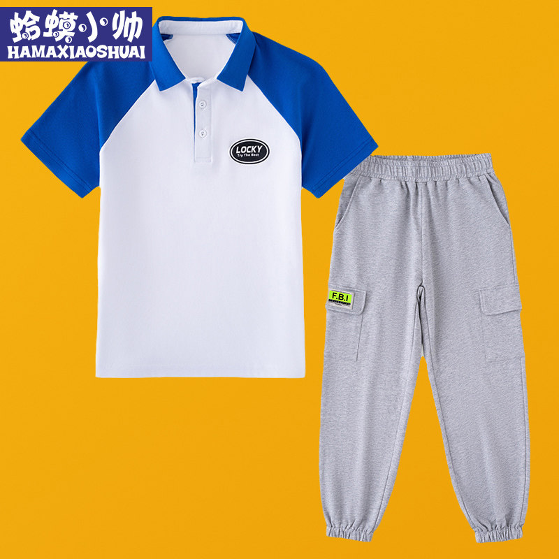 Boys suit summer 2022 new children's Korean version in the big boy handsome short-sleeved boy Western style sports suit tide