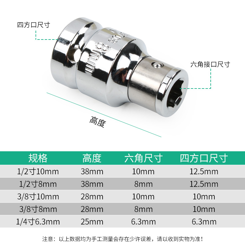 Clasp sleeve Batch head converting head sleeve Swivel Head Sleeve head sleeve Sleeve Big 1 4 inches sleeve wrench H6 3 8 10mm screwup joint