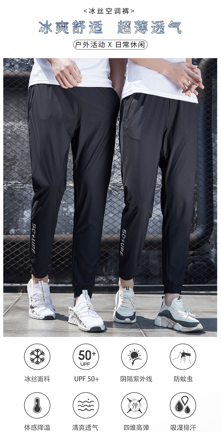 Rice straw man speed dry pants male and female anti-UV breathable elastic ice silk casual pants sports outdoor light and thin climbing pants