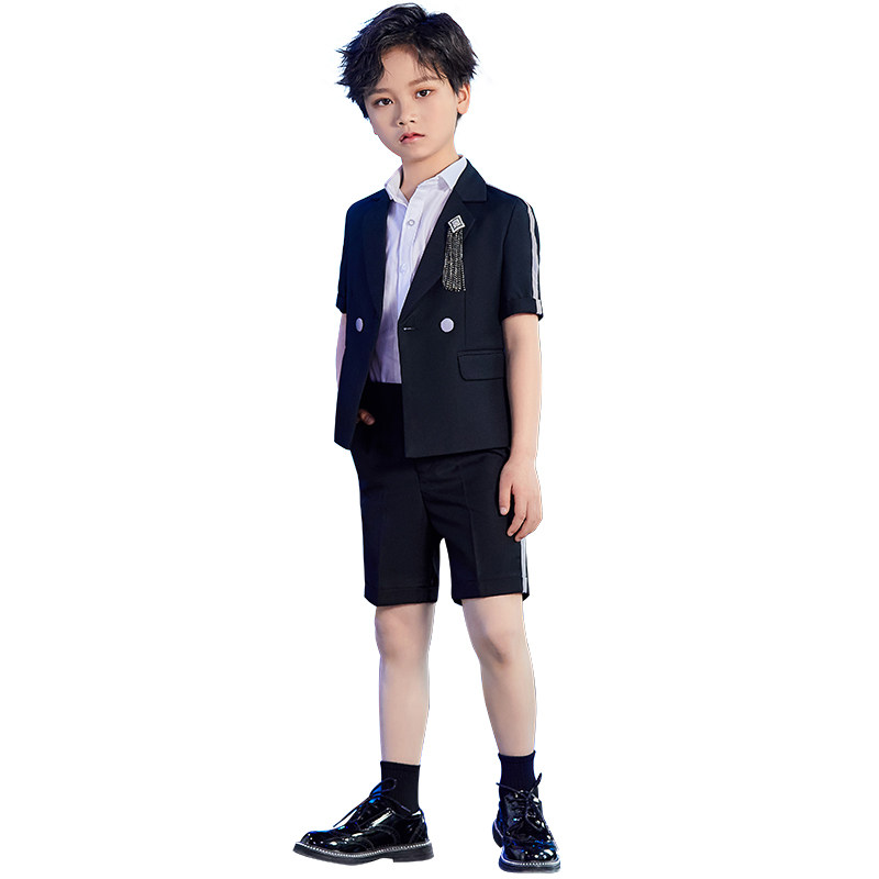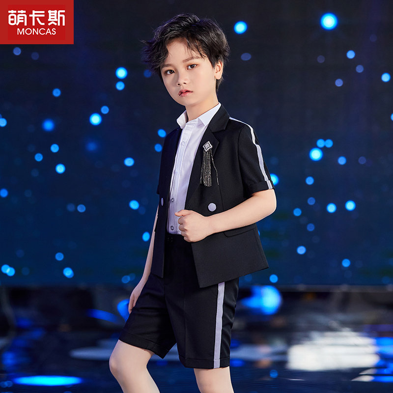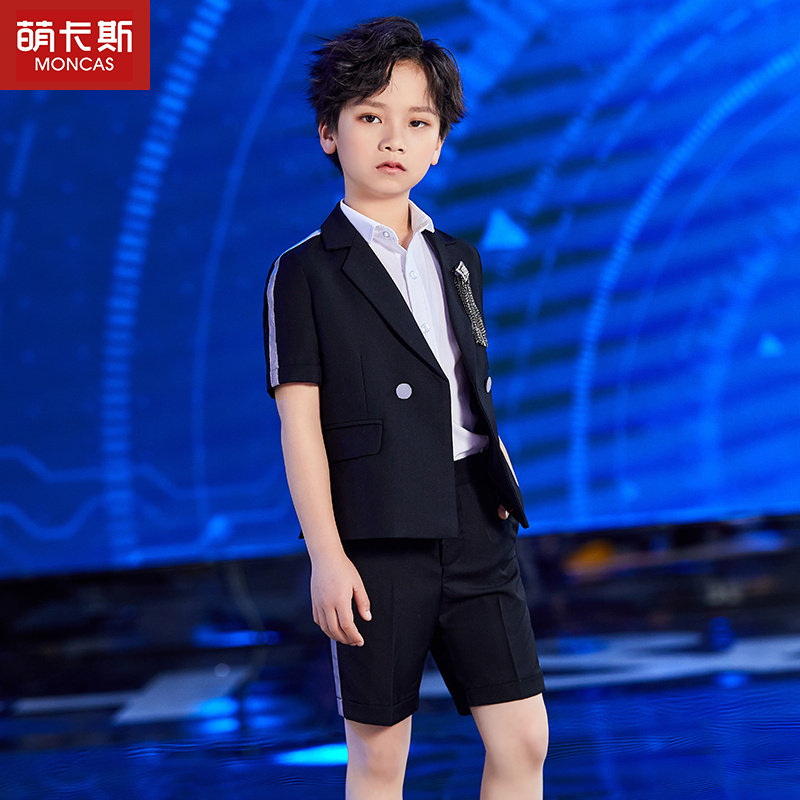 Boy Suits Suit Short Sleeves New Children Walk Show Performance CUHK Children's Piano Plays Out Small Host Gown