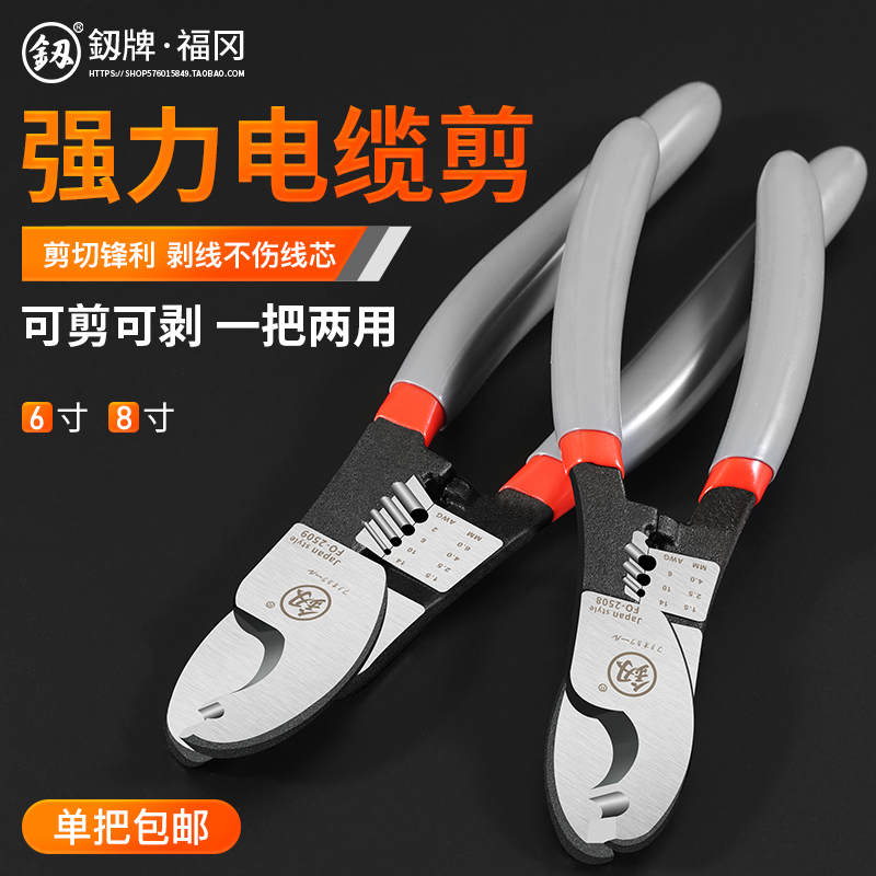 Fukuoka cable cut wire pliers 6 inch electrician special wire cut wire cut wire copper wire crescent scissors exfoliating pliers tool