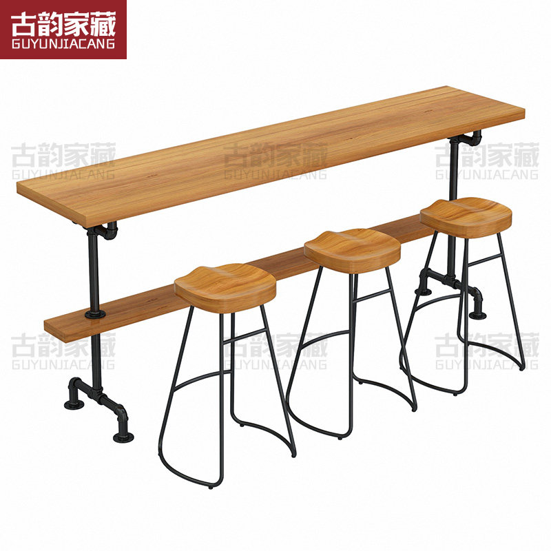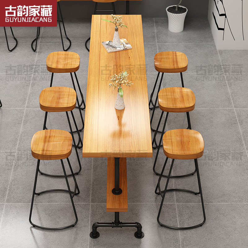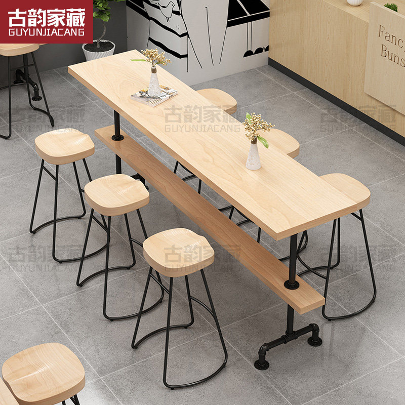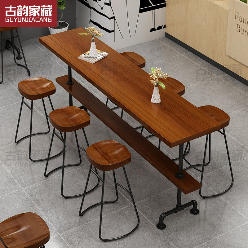 Small bar desk with wall commercial bar Industrial Feng Shui tube Table solid wood Milk Tea Shop Coffee Strip High Foot Table And Chairs