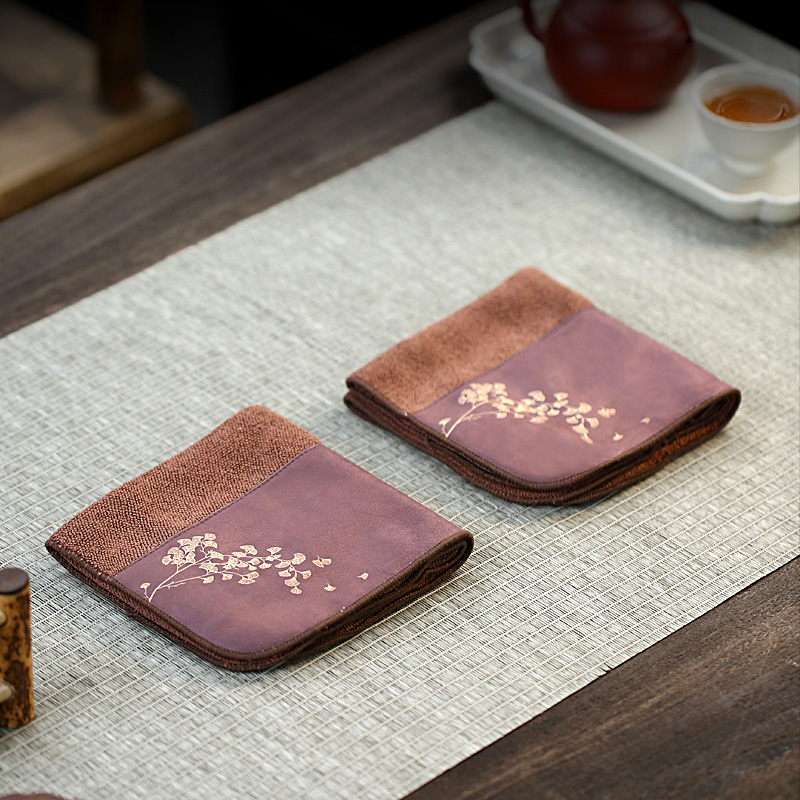 Thick and absorbed tea towel Kung fu tea table tea table pot cushion towel Ginkgo leaves