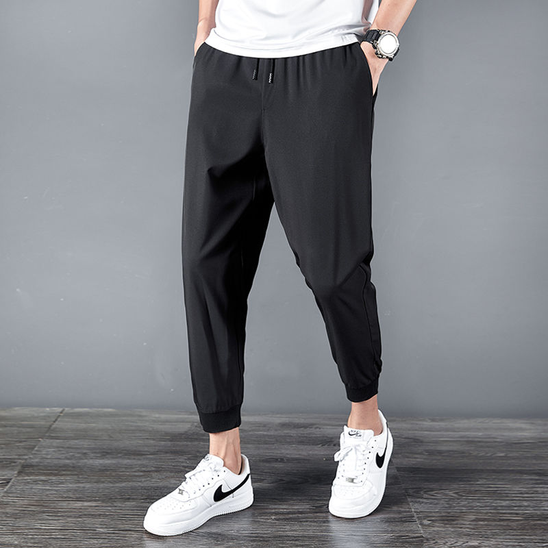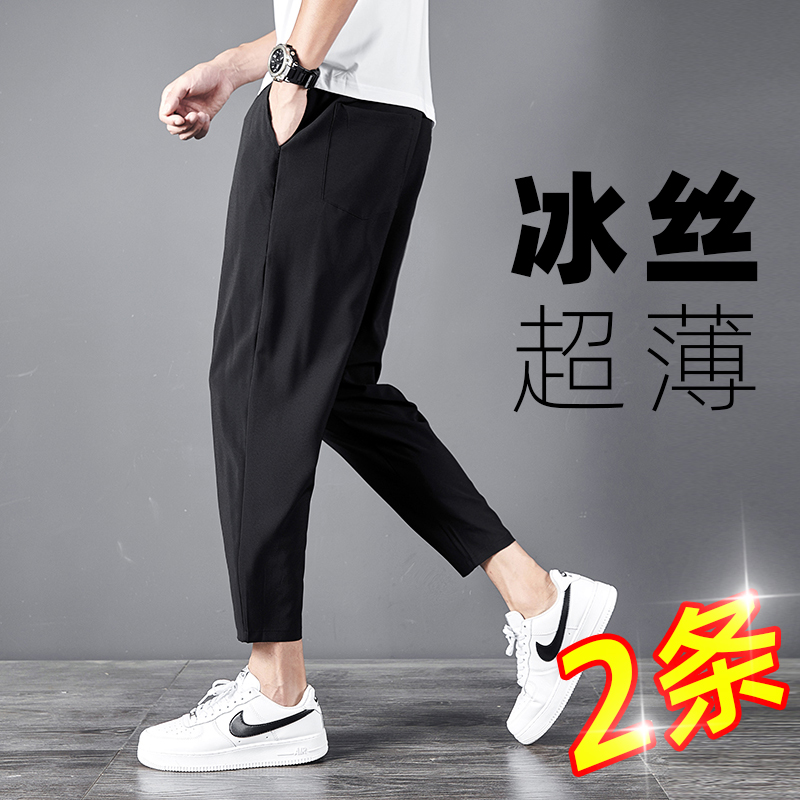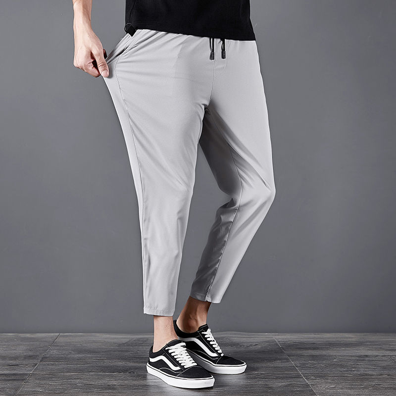 Pants Men's 2022 New Summer Thin Section Korean Trend Loose Ice Silk Nine-point Trousers Sports and Leisure Trousers