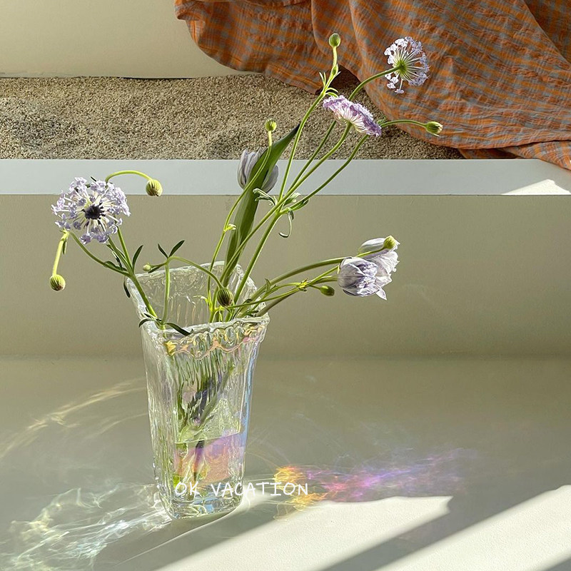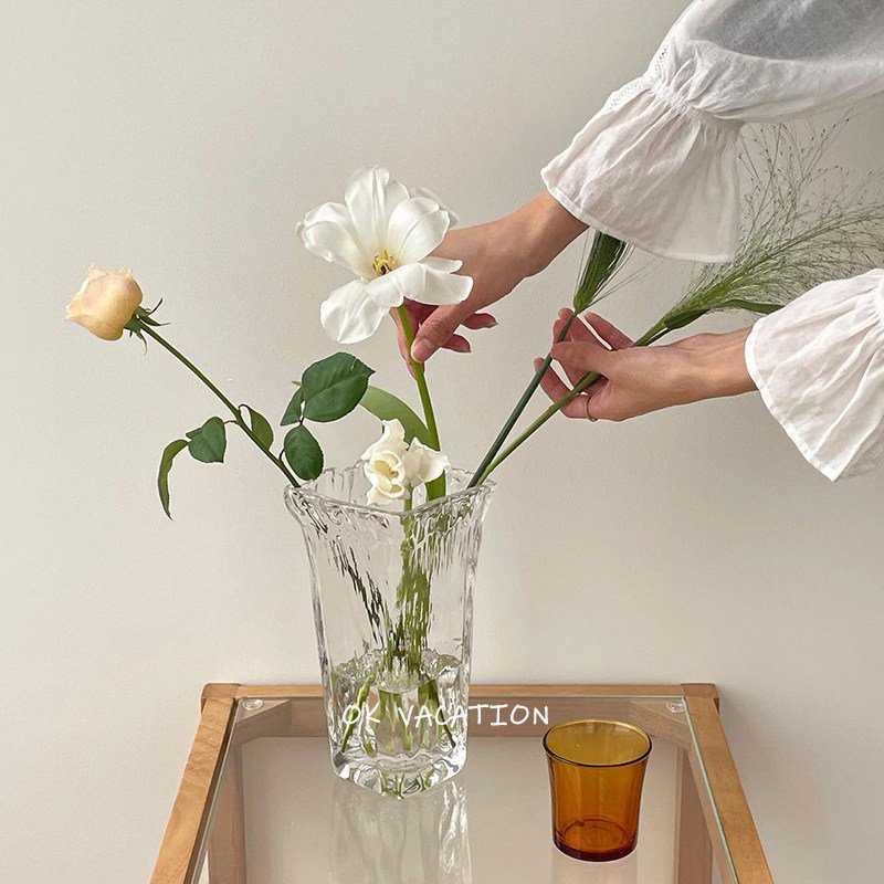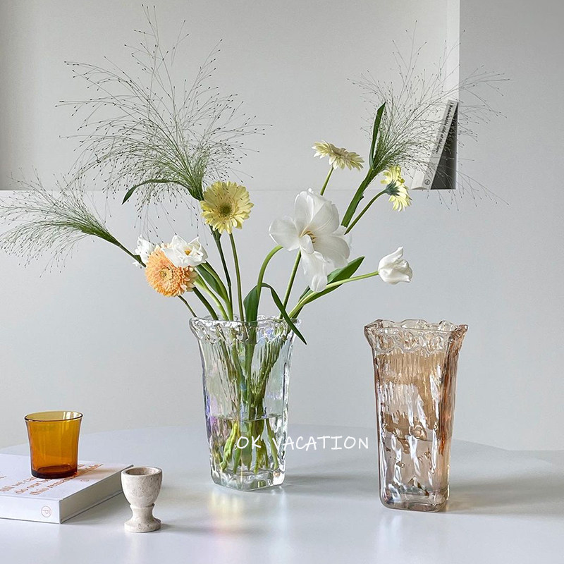 ins Korean style square irregular shape glass large vase decoration hydroponic flower hydroponic dining room famous decoration