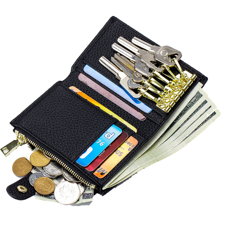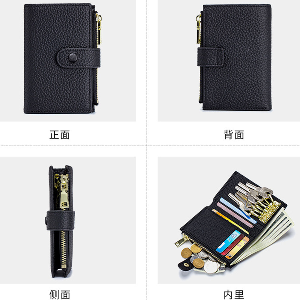New large-capacity key bag card bag two-in-one small wallet leather storage portable multi-function key coin purse